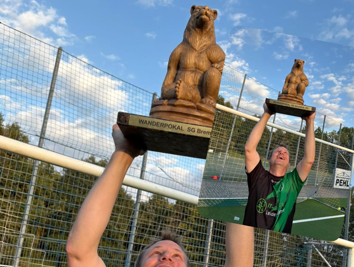 Nach dem Abpfiff war die Freude riesen groß! Damit hatte wahrlich niemand gerechnet. Auch die Bremthaler waren sichtlich überrascht, dass das kleine gallische Dorf von neben an tatsächlich den Pott, bzw. den Bremthaler Bären in den Händen halten konnte.